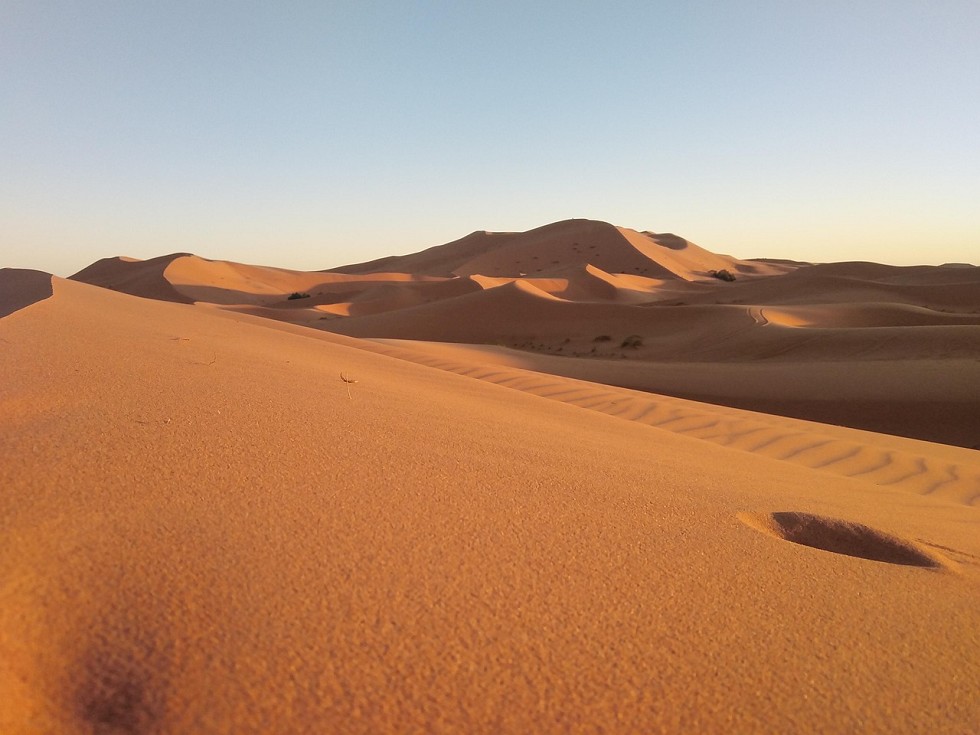 Prima colazione in hotel. Al mattino partenza per TAMEGROUTE, famosa per le ceramiche, e visita alla libreria dove sarà possibile ammirare vecchi libri e documenti che risalgono al XII secolo. Pranzo in ristorante. Nel pomeriggio proseguimento verso il villaggio di TANSIKHT lungo la Valle Draa, de ammirando il paesaggio sahariano e i villaggi berberi di Tazarine e Anlif. In serata arrivo ad ERFOUD ed escursione in fuoristrada sulle dune sabbiose di MERZOUGA per assistere al tramonto nel deserto. Possibilità di giro in cammello. In serata sistemazione in campo tendato per la cena e il pernottamento.